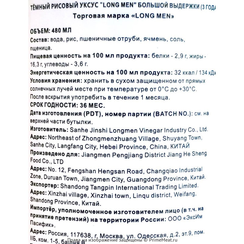 Описание продукта Тёмный рисовый уксус "LONG MEN" большой выдержки (3 года), 480 мл: