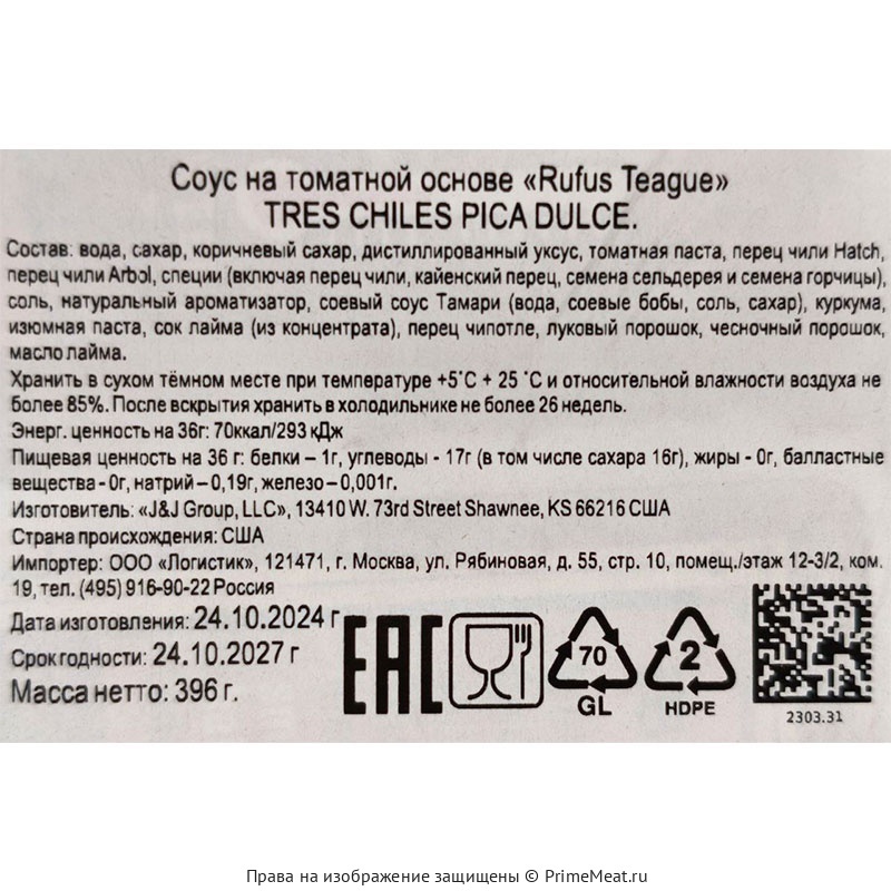 Соус томатный Rufus Teague "LATINO BBQ SAUSE TRES CHILES PICA DULCE" (Три перца со сладкой остротой), 396 г (фото) Соус томатный Rufus Teague "LATINO BBQ SAUSE TRES CHILES PICA DULCE" (Три перца со сладкой остротой), 396 г (фото)